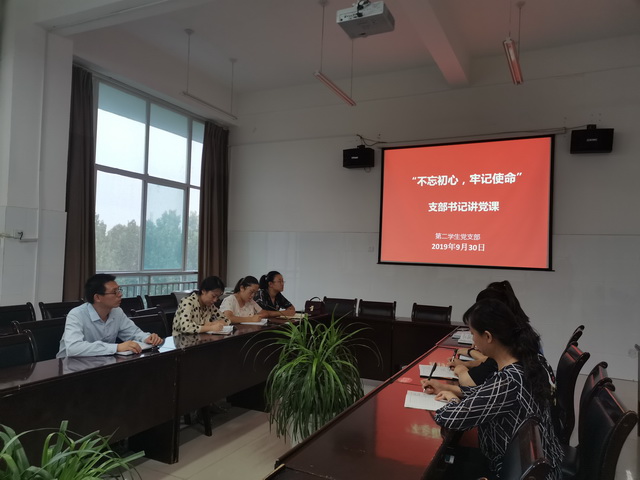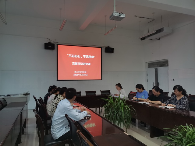 9月30日,bw必威西汉姆联官方网站第二员工党支部书记苏伟伟为支部教师党员上了一节关于“不忘初心、牢记使命”的专题党课。