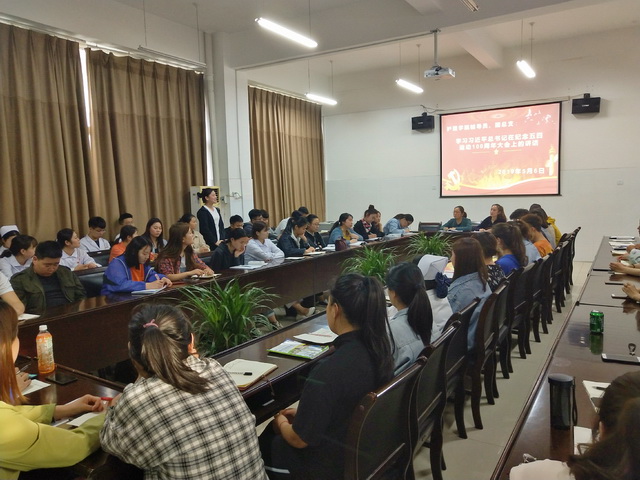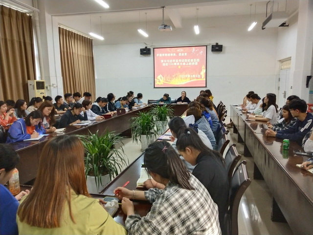 2019年5月6日下午,bw必威西汉姆联官方网站组织全体辅导员、团总支成员和17、18级各班团支书80余人共同学习习近平总书记在纪念五四运动100周年大会上的重要讲话。