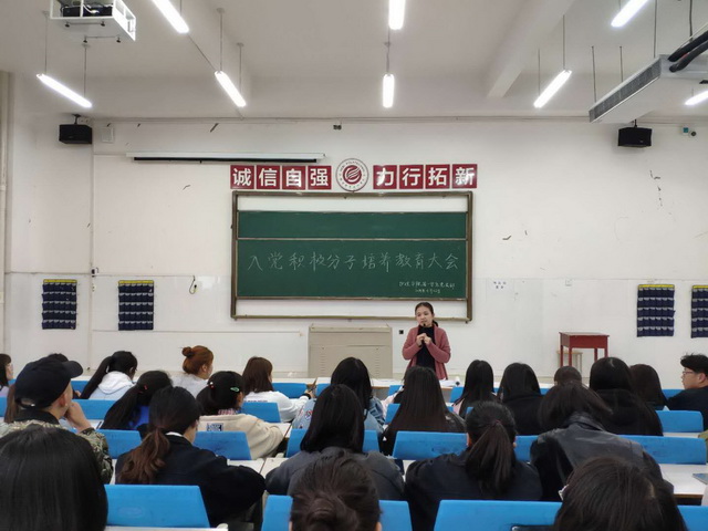 公司党总支第一员工党支部于2019年4月26日在B110教室对213名入党积极分子进行了“坚定理想信念,做新时代老员工”专题讲座。