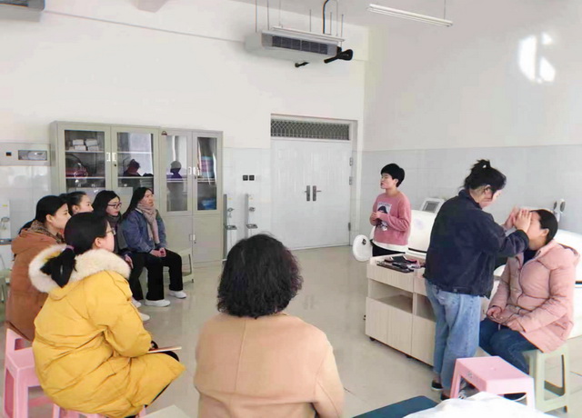 本次系列活动之二为护理职业妆容培训与指导,活动在诚信6号楼美容护理实训室进行。特别聘请高级彩妆师陈老师针对护理职业特点对女教职工开展职业妆容培训;并针对参与老师的特点进行一对一符合个性化指导。