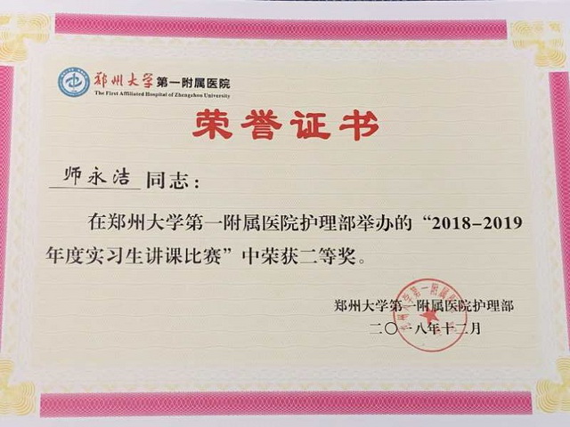 在会上,医院还为在实习生教学活动中获奖的同学,颁发了荣誉证书。公司两名同学获奖。