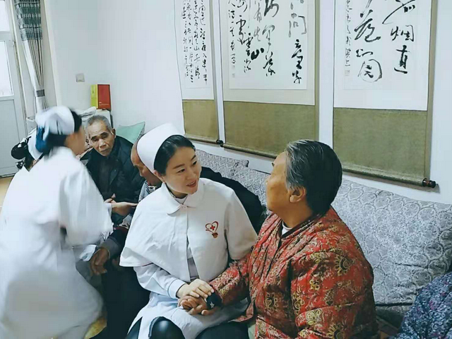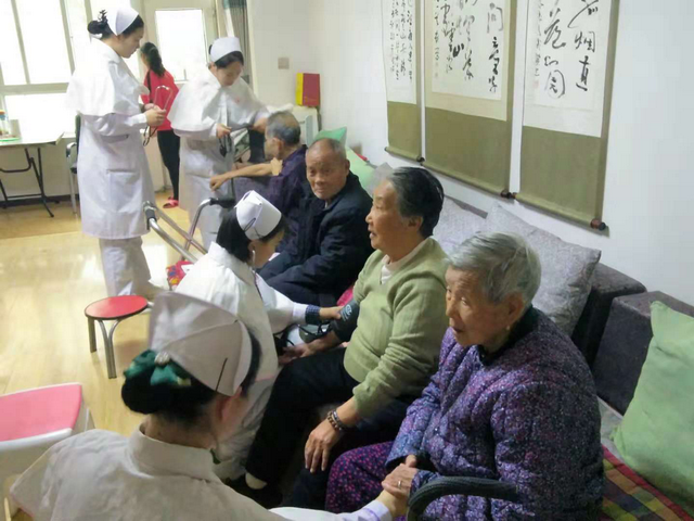 在老师的指导下,同学们为爷爷、奶奶们进行血压测量,并为其建立血压测量记录本,作为长期监测血压变化的依据;对肢体功能障碍的长者进行康复功能锻炼指导;在聊天过程中了解每一位老年人的身体状况,并对常见疾病进行健康教育;教师志愿者讲解生活护理技术以及噎呛、跌倒的急救护理等;同学们还精心准备了红歌《打靶归来》、《歌唱祖国》、《没有共产党就没有新中国》进行演唱,为老人们带去了欢声笑语,爷爷、奶奶们对志愿者们的到来表达出愉悦的心情,同时也让志愿者们感受到了献出爱心的快乐。