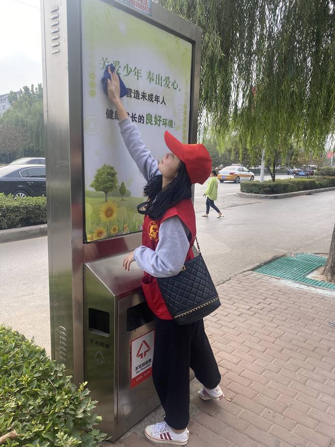 在泰山路分包路段,志愿者门充分发扬不怕脏,不怕累的精神,认真清除绿化带、人行道上的垃圾杂物;对街道标识牌、公交站亭、宣传栏、垃圾箱等设施进行清洁擦拭,并对路上行人进行创建文明城市、卫生城市内容宣传,引导市民自觉行动,助力“六城联创”。