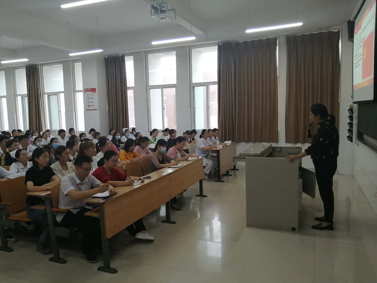 9月24日下午,护理学支部在院第二、第三员工党E507教室开展新学期第一次“党员教师上党课”活动。第二、第三员工党支部党员教师和全体入党积极分子168人参加。