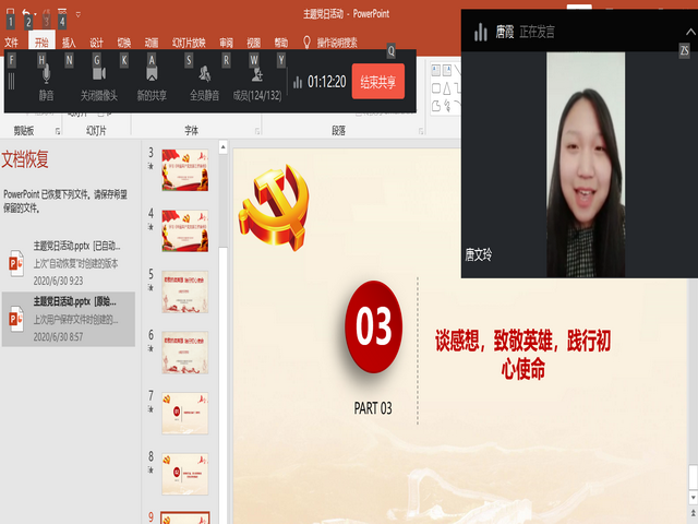 活动通过观看抗疫纪录片《雄关》,学习身边的榜样——毕业生党员的抗疫事迹,畅谈感言,致敬抗疫英雄,重温入党初心,用实际行动践行党员使命。