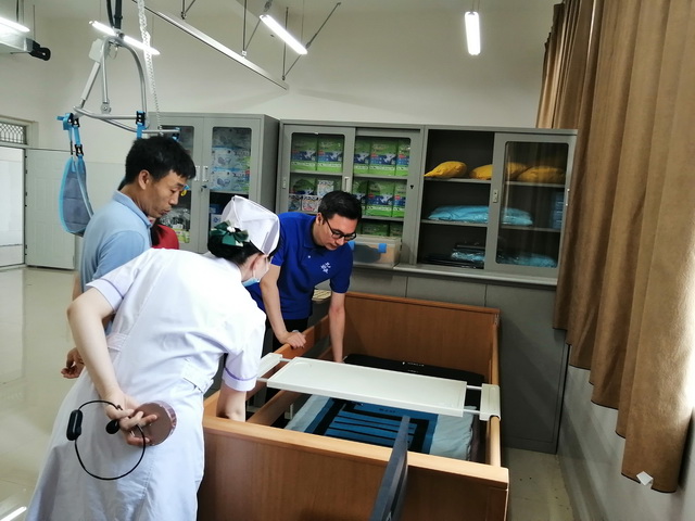 公司党总支书记苏丽秋带领参观了基础护理实训中心、临床护理实训中心、老年康养实训中心。副经理王文生对老年康养实训中心的布局、未来规划及员工在老年护理、康复护理等课程实训方面进行了详细介绍;廖经理对老年康养实训中心的建设给予了高度评价,也对老年康养实训中心的建设和未来规划提出了建议和意见。