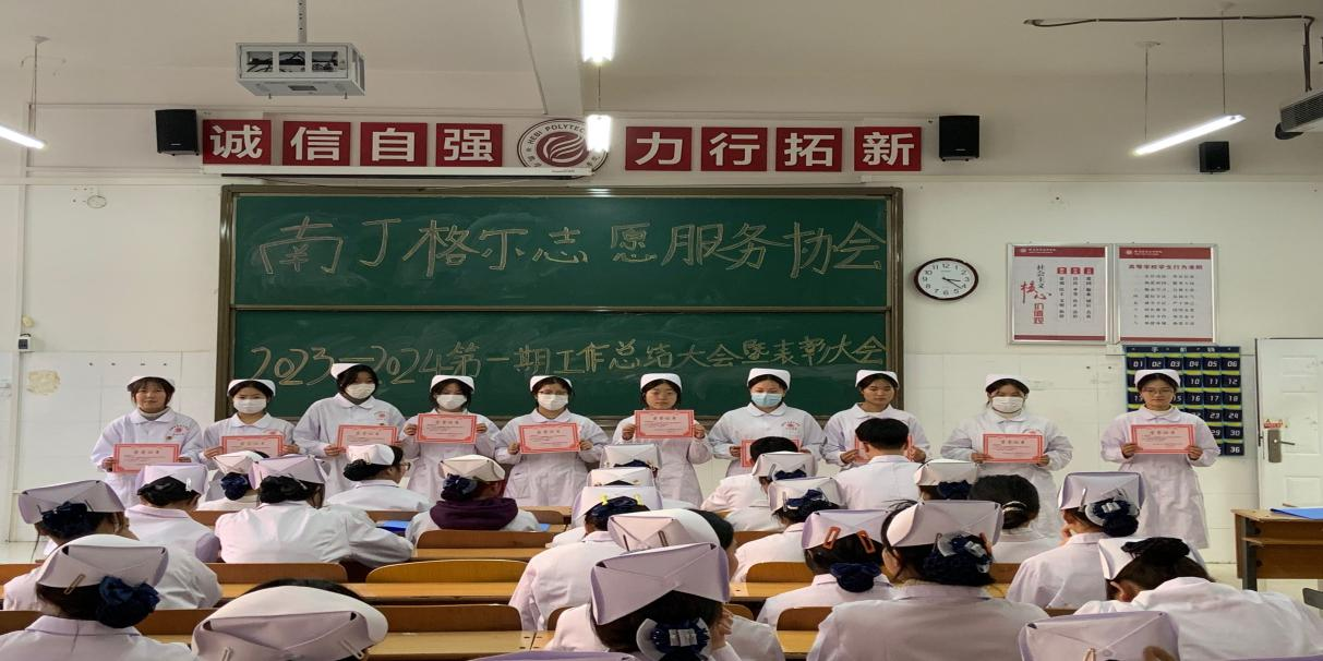 2023年1月3日,bw必威西汉姆联官方网站南丁格尔志愿服务协会在诚信1号楼E309教室召开2023-2024学年第一学期工作总结暨表彰大会,南丁格尔志愿服务协会全体成员参会。