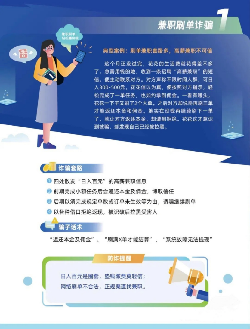 叮咚叮!叮咚叮!当前正值暑期也是各种诈骗的高发期。同学们在享受暑假的同时,要怎样做到反诈防骗呢?这里小编为大家整理了九大电信网络诈骗套路,快来一起学习吧!