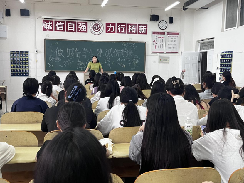 此次班会强化了考生的诚信意识,进一步端正考风、严肃考纪,同时进一步明确了积极备考的目标,做到诚信考试。