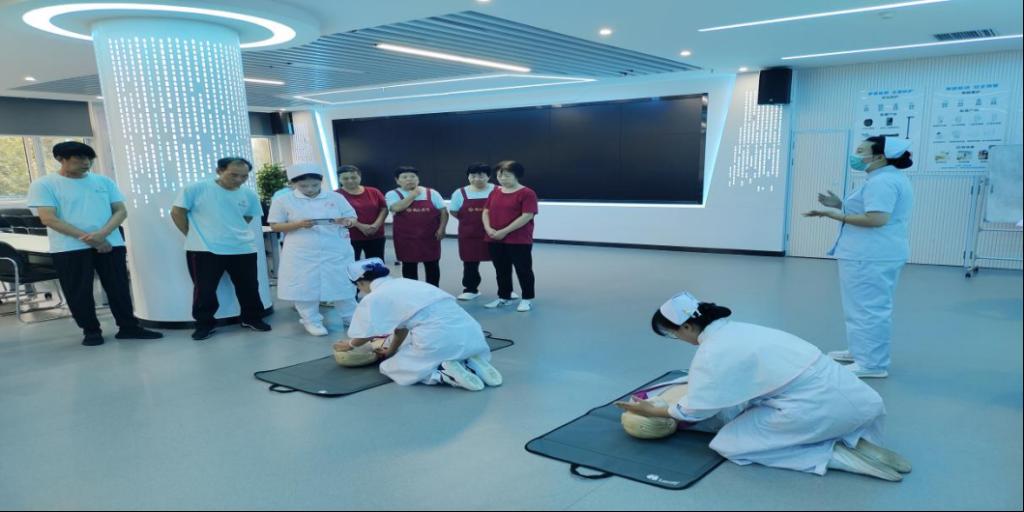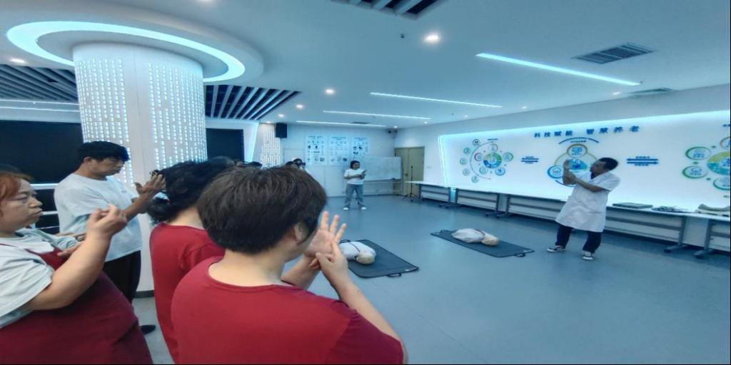 活动中,老师们以其专业的急救技术知识和丰富的实践经验,为禧仁养老院的护理人员带来了一场心肺复苏培训,从理论到实操,让护理人员们都能掌握关键的急救技能。随后,老师们还为禧仁养老院的护理人员们讲解了老年照护的常用方法,从饮食到睡眠以自己的专业技能为每一个人提供了护理指导,护理人员们不仅学会了科学,人性化的照护技术,更深刻理解了“老吾老以及人之老”的温情与责任。之后老师带领志愿者来到老人们的活动区,在这里为老人们测量血压,关注每一位老人的健康情况。