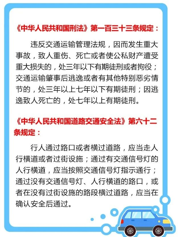 除提高交通安全意识,掌握基本的交通安全常识外,还必须自觉遵守交通法规。在道路上行走,应走人行道,无人行道时靠右边行走。走路时要集中精力,不低头玩手机、打闹;不与机动车抢道,不突然横穿马路,翻越护栏,过街要走人行横道。不闯红灯,不进入标有“禁止行人通行”、“危险”等标志的地方。