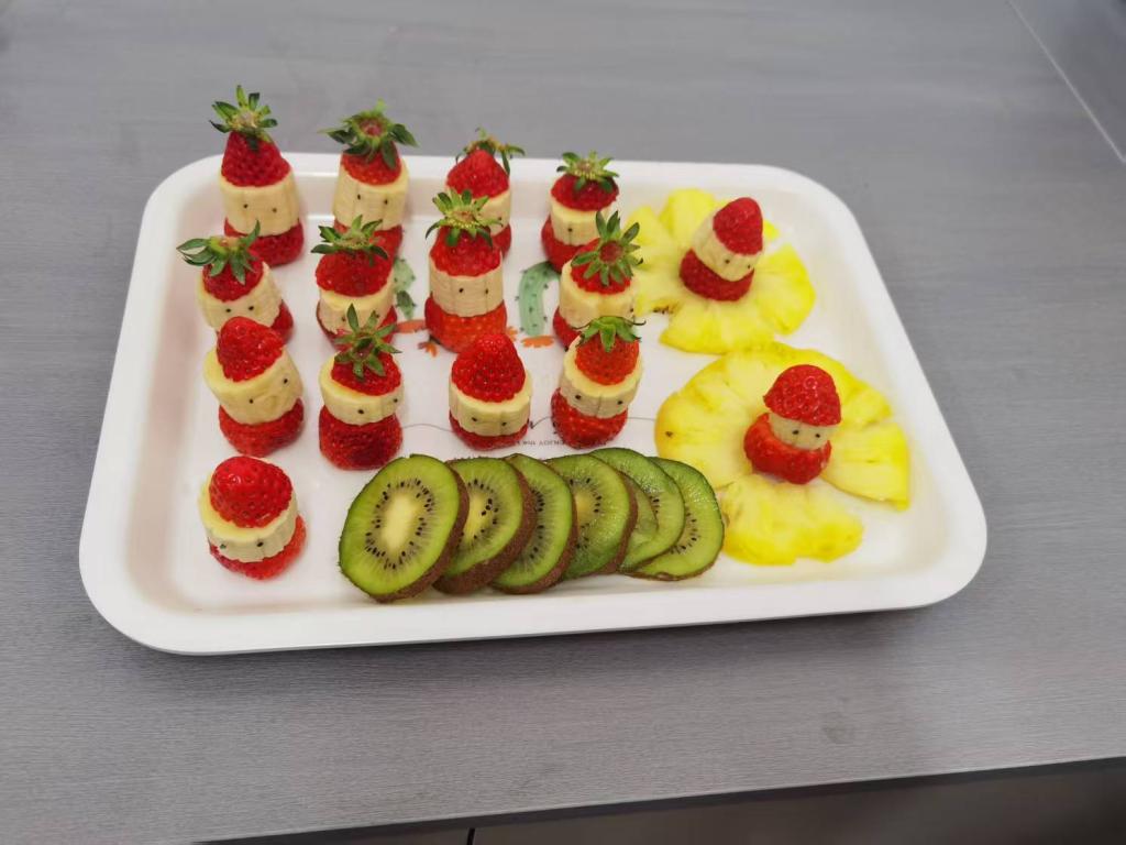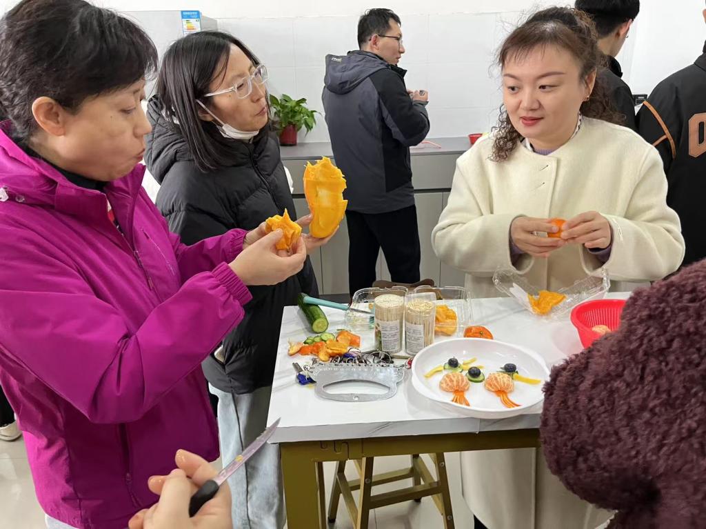 随后进行的拼果盘比赛同样精彩。活动现场准备了琳琅满目的水果,如鲜艳欲滴的草莓、金黄的芒果、翠绿的猕猴桃等。女教师们充分发挥创意,精心设计果盘造型。有的以“花团锦簇”为主题,用水果摆出娇艳的花朵;有的打造出“海底世界”,色彩斑斓的水果化作灵动的鱼儿和珊瑚。大家在欢声笑语中交流着水果拼盘的技巧,增进了彼此间的友谊。