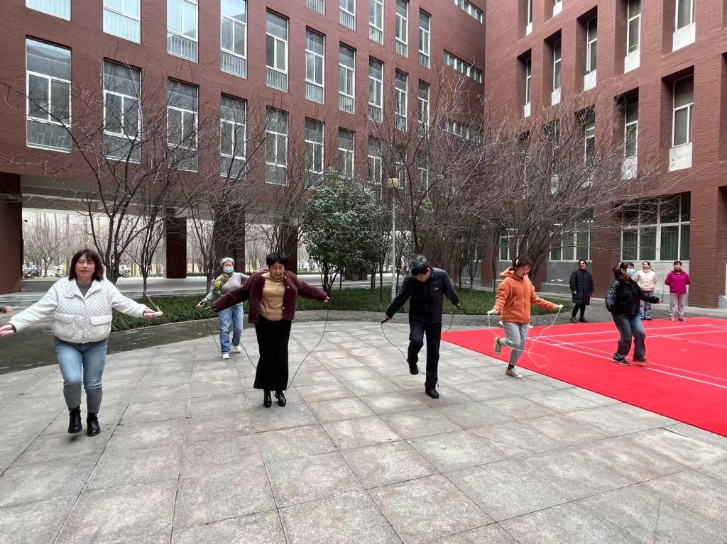 活动伊始,跳绳比赛在一片欢声笑语中拉开帷幕。教师们热情高涨,轻盈地跳跃着,五彩的跳绳在空中飞舞,形成一道道美丽的弧线。单人跳绳环节,选手们各显神通,快速的节奏让人目不暇接;多人跳绳时,大家默契配合,齐心协力,展现出团队合作的力量。现场加油声、呐喊声此起彼伏,气氛热烈非凡。