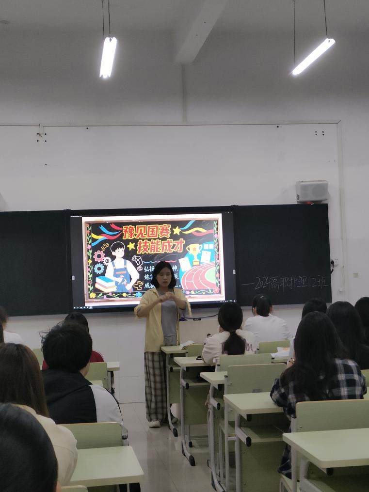 各班级班会形式丰富多样、内容扎实饱满。辅导员们通过PPT 演示、视频展播等方式,向同学们详细介绍了第三届全国技能大赛的举办时间、地点、赛事规模及护理相关技能竞赛项目。随后,结合护理专业特色,辅导员们分享了往届全国技能大赛中护理赛项参赛情况,通过鲜活案例引导员工认识到技能提升对职业发展的重要意义。