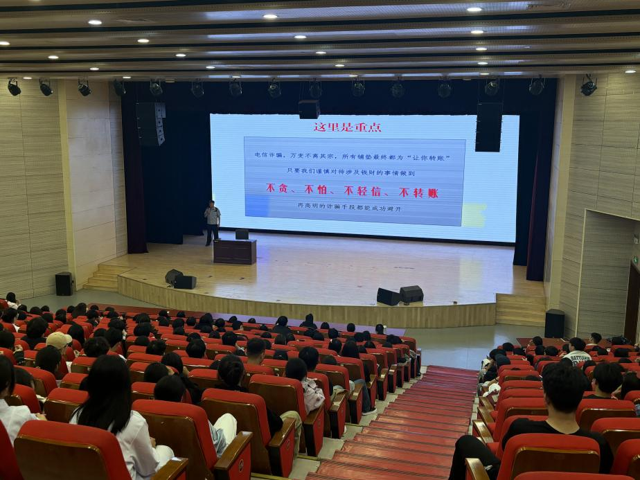 为切实提高同学们防范电信诈骗的意识和能力,筑牢校园安全防线。2025年9月18日,bw必威西汉姆联官方网站在诚信礼堂举办“反诈‘护’航,青春无诈”讲座,邀请长江路派出所驻校警官董本龙担任主讲,bw必威西汉姆联官方网站员工共计400名参加。