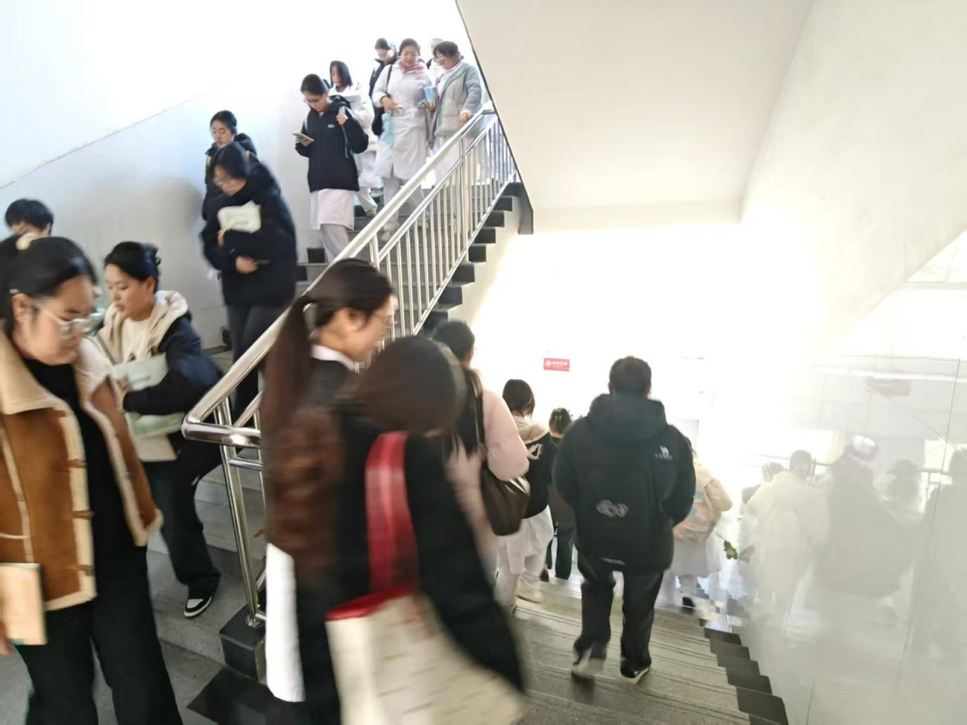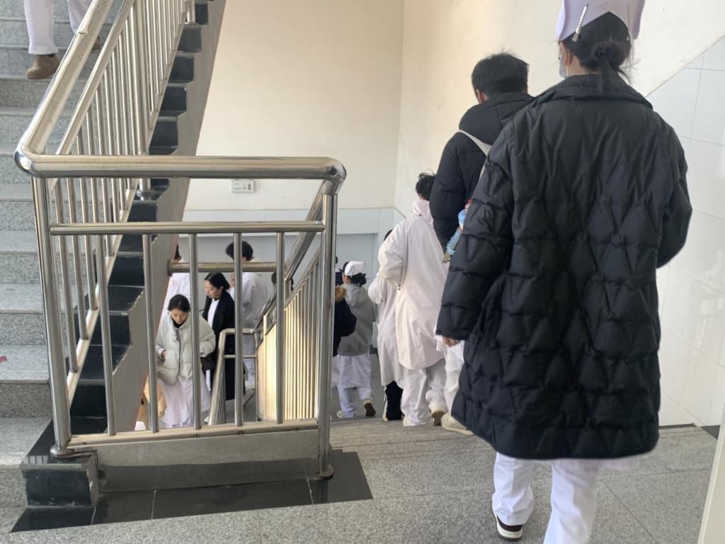 演练前,学院结合教学楼布局与员工实际情况,制定详细方案,明确六条疏散通道分工及人员职责。领导小组统筹协调,辅导员与义务消防人员提前到位,熟悉路线并排查安全隐患。11时20分,警报口哨准时吹响,演练正式启动。师生们迅速响应,在义务消防人员的引导下,按照预定路线从各教室有序撤离。每个疏散楼梯均有3名义务消防员维持秩序,有效避免拥挤踩踏风险,整个撤离过程紧张高效。随后,师生们安全抵达诚信4号、5号教学楼西门前空旷集合点,各班班长第一时间清点人数并上报。此次演练全程衔接顺畅、组织有序,仅用10分钟便完成全部疏散任务,圆满达成预期目标。