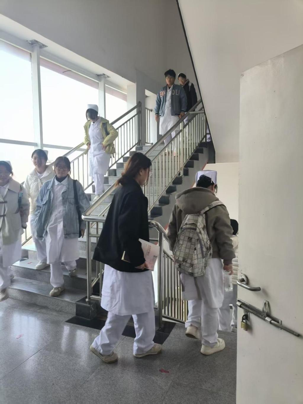 演练前,学院成立应急疏散演练领导小组,结合教学楼布局制定详细方案,明确六条疏散通道分工及人员职责。辅导员与义务消防人员提前到位,熟悉路线并排查安全隐患,各疏散楼梯均安排5名义务消防员定岗值守。11时20分警报口哨响起,师生迅速响应,在义务消防人员引导下沿预定路线有序撤离教学楼,演练全程仅10分钟,衔接顺畅、组织有序,有效规避拥挤踩踏风险。演练后,领导小组对本次活动进行考评与总结。