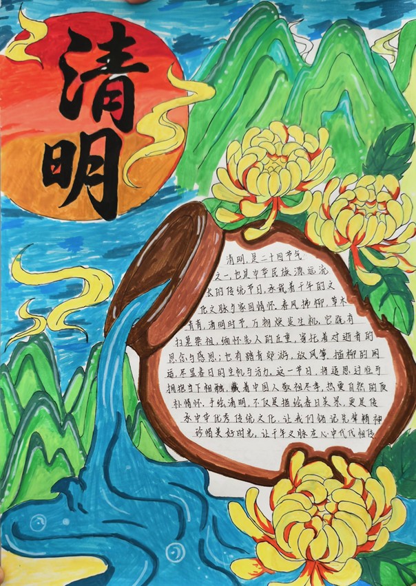 此次活动以手抄报这一青年喜闻乐见的形式,让传统文化走出课本、走进生活。同学们在创作实践中深化了对清明文化的理解,在笔墨挥洒中传承了中华文脉,更在同心参与中凝聚起奋进力量。这份青春与传统的碰撞,不仅让清明的文化内涵愈发鲜活,更激励着护理学子将家国情怀内化于心、外化于行,让优秀传统文化在新时代的青春践行中生生不息。