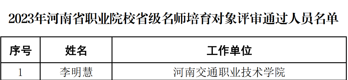 近日,河南省教育厅、河南省人力资源和社会保障厅发布《关于2023年河南省职业院校省级名师和省级骨干教师培育对象评审结果的公示》,bw必威西汉姆联官方网站张淑艳老师、申洁老师成功入选。