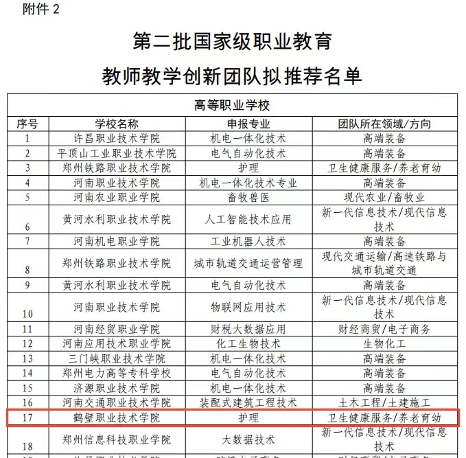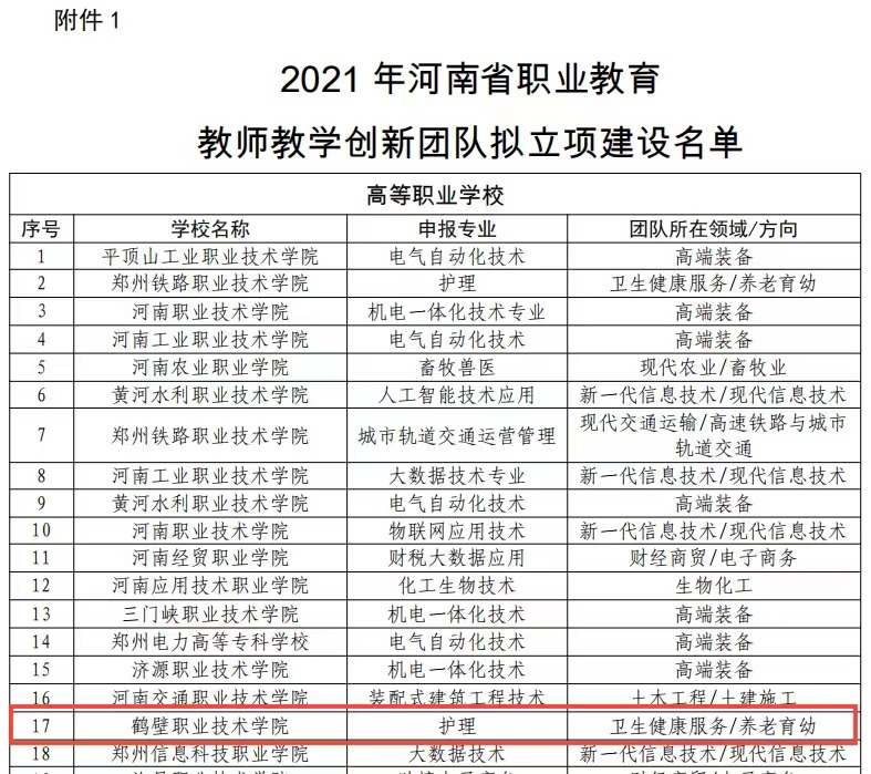 bw必威西汉姆联官方网站卫生健康服务/养老育幼获省级职业教育教师教学创新团队拟立项建设