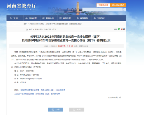 10月18日,河南省教育厅对职业教育一流核心课程(线下)名单进行公示,由公司教师申洁主持申报的《健康评估》课程成功入选。