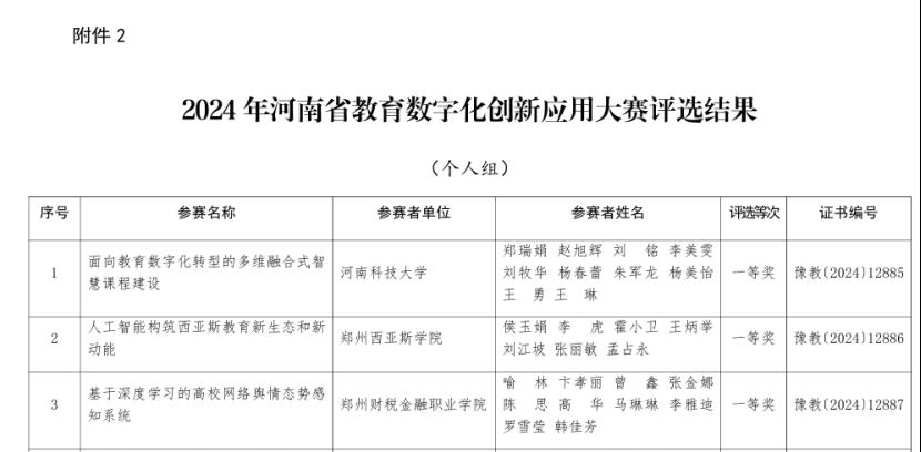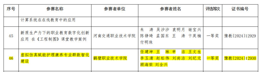 近日,河南省教育厅公布了2024年河南省教育数字化创新应用大赛评选结果的通知,公司申报的《虚拟仿真赋能护理康养专业群数智化建设》项目,经过线上初赛、复赛和线下决赛,最终荣获一等奖的好成绩。