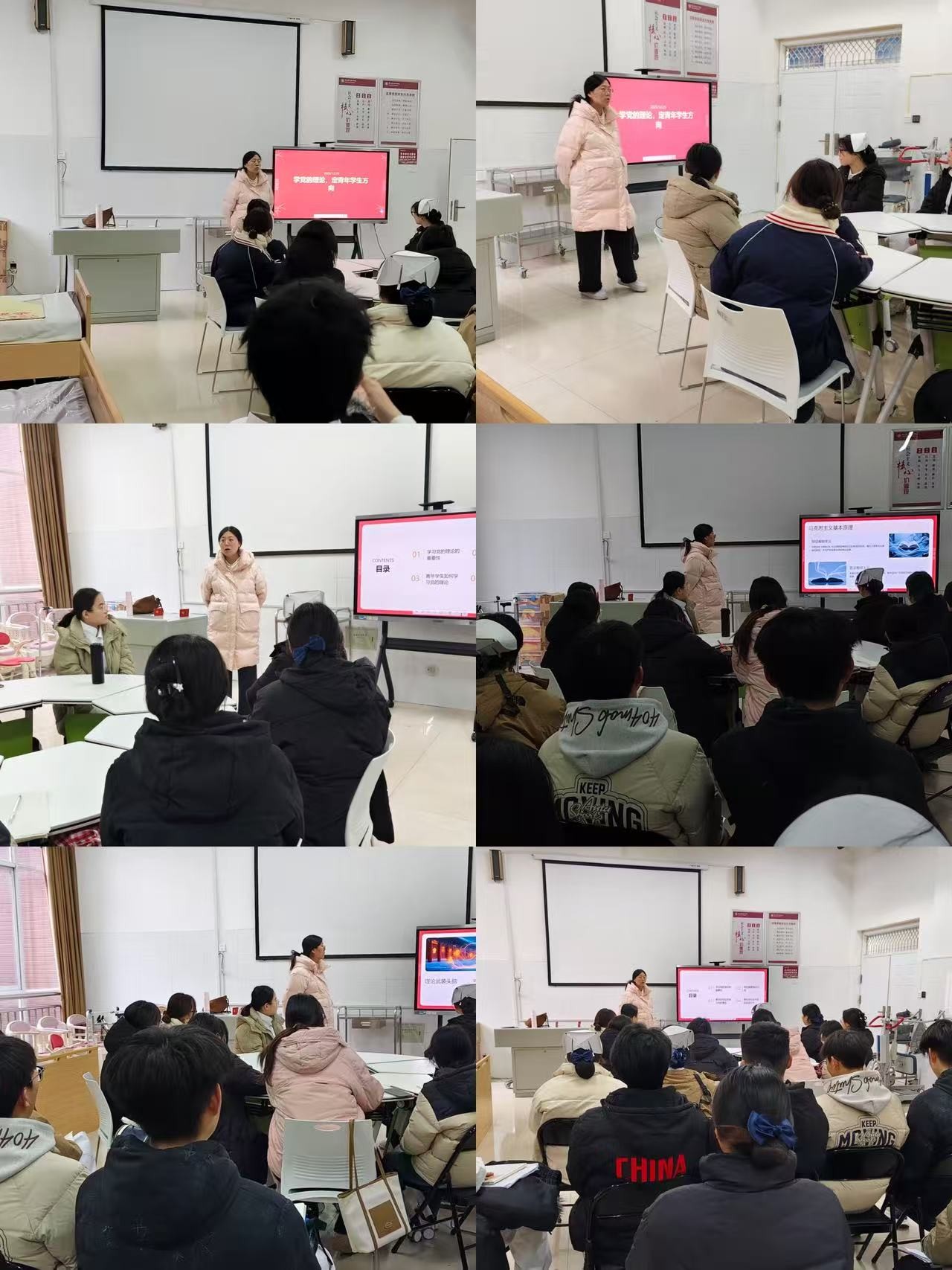 在活动中,党员教师尹艳茹以学习党的理论的重要性为切入点,围绕习近平新时代中国特色社会主义思想展开分享。她引导同学们深刻领悟辩证唯物主义的精髓,系统把握毛泽东思想、邓小平理论等党的重要思想的核心要义,深入阐释习近平新时代中国特色社会主义思想这一党的创新理论最新成果。尹艳茹老师援引“立大志、明大德”的时代要求,勉励同学们要冲锋在前,以实际行动诠释使命担当;同时倡导大家深入研读《习近平著作选读》等经典著作,积极投身社会实践,树立正确的世界观、人生观、价值观,真正做到学思用贯通、知信行统一,将理论学习成果转化为服务国家、奉献社会的实际行动。
