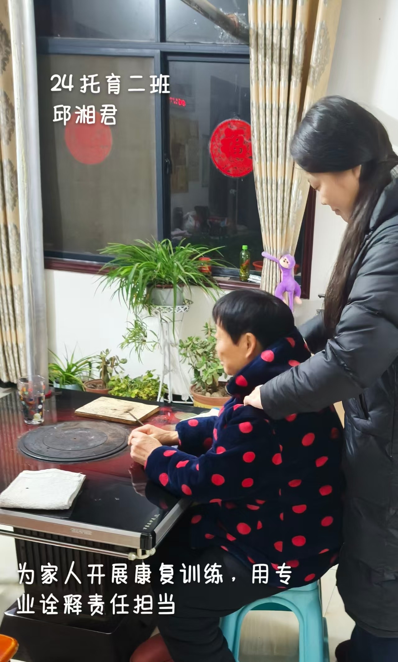 活动启动后,同学们积极响应,充分发挥专业优势,为家人完成肩颈放松、关节活动训练等康养照护服务,将理论知识融入生活日常,用专业技能为家人送去健康与温情,在实践中深化对专业价值的理解。