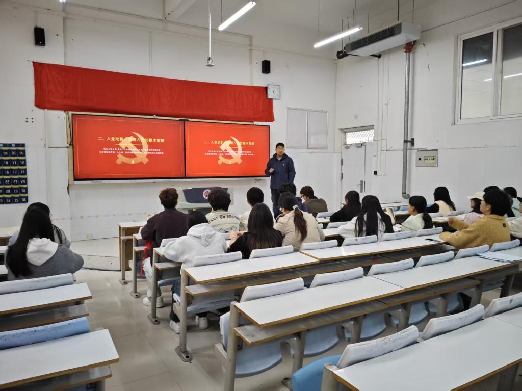 党支部李飞老师以“筑牢信仰之基、端正入党初心”为题核心进行授课,他深刻阐释理想信念作为共产党人政治灵魂的深刻内涵,详细解读“为共产主义事业奋斗、为人民服务”的正确入党动机核心要义,还从理论学习、实践锻炼、接受组织培养三方面指明实践路径。授课中,李飞老师以黄大发、张桂梅、黄文秀等优秀党员事迹为榜样,引领入党积极分子感悟共产党人矢志不渝的理想信念与无私奉献的精神品格。