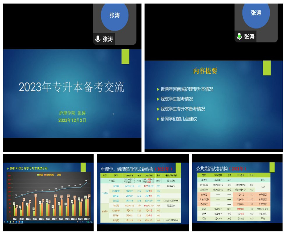 会议伊始,张涛老师向同学们介绍了河南省专升本考试相关政策和现状、招生院校以及就业情况,详细分析了护理专业的考试科目、复习目标和学习规划的注意事项。会上邀请了2022届专升本成功的毕业生党员陈瑶向大家分享经验,她结合自己的备考经历,从学习方法、备考心态以及重点学习内容等多个方面向同学们提出了建议,鼓励同学们要有更高的目标,争取更大的人生舞台。
