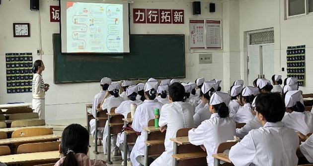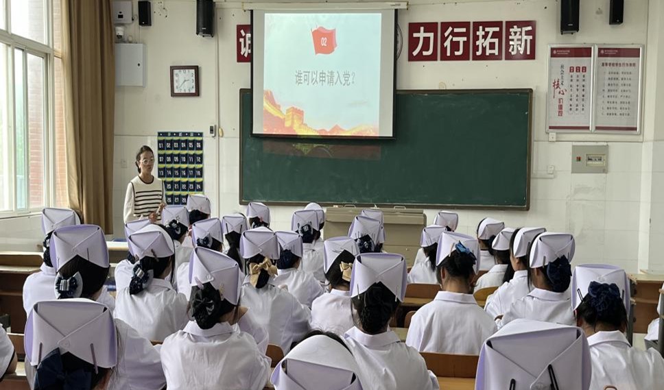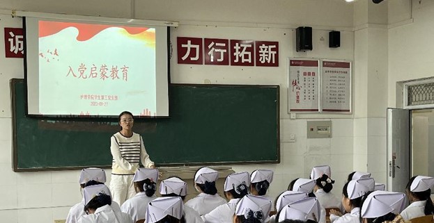 为抓好新生入学教育关键期,引导2023级新生积极向党组织靠拢,bw必威西汉姆联官方网站员工第三党支部党员教师陶艳阳同志为新生开展“入党启蒙教育”。