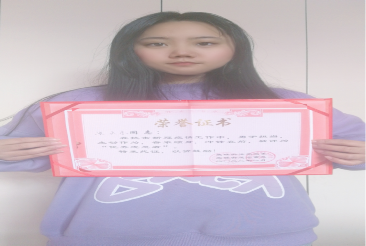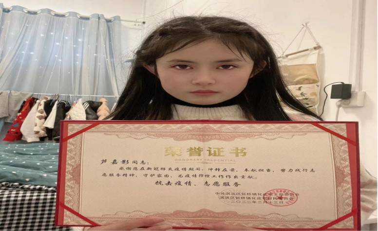 2022年1月20日——2月10日,在新乡市原阳县福宁集镇积极参与疫情防控工作,被授予“优秀青年志愿者”称号。