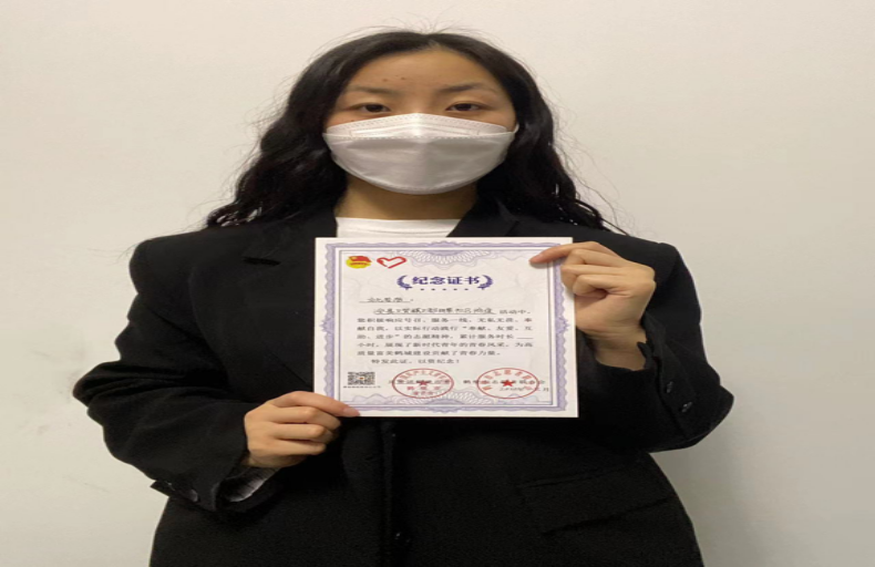 2022年1月31日——2月14日,在鹤壁市山城区矿务局社区参与疫情防控工作,被评为“优秀志愿者”。