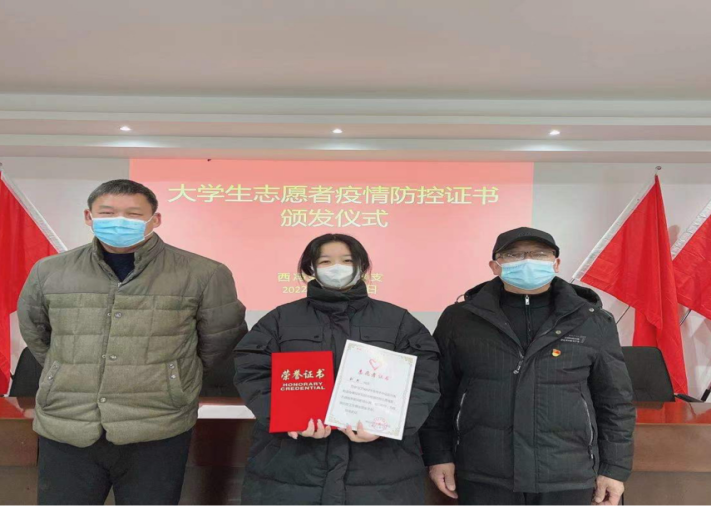 2022年1月28日——2月16日,在武陟县西陶镇大南张村委会做志愿者,并获得荣誉证书。