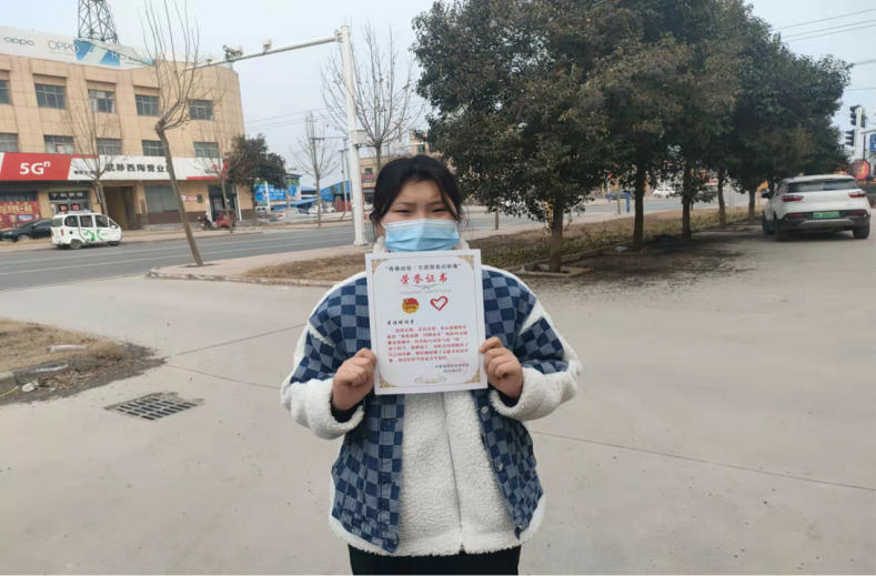 2022年1月19日——2月17日,在鹤壁市淇滨区泰山路街道九州社区做志愿者,被评为“优秀志愿者”。