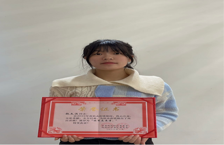 2022年1月24日——2月12日,在安阳市滑县上官镇西太和村积极参与疫情防控,被评为优秀志愿者。