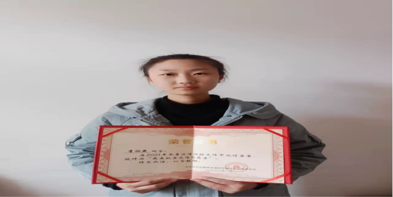 2022年1月14日——1月30日,在鹤壁市明达社区疫情防控卡点做志愿者,被共青团淇滨区委授予荣誉证书。