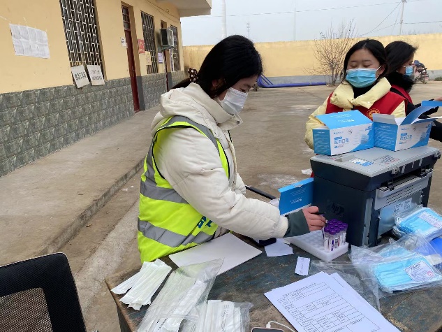 2022年1月11日,在河南省安阳市滑县上官镇兰三村协助医护人员核酸检测。
