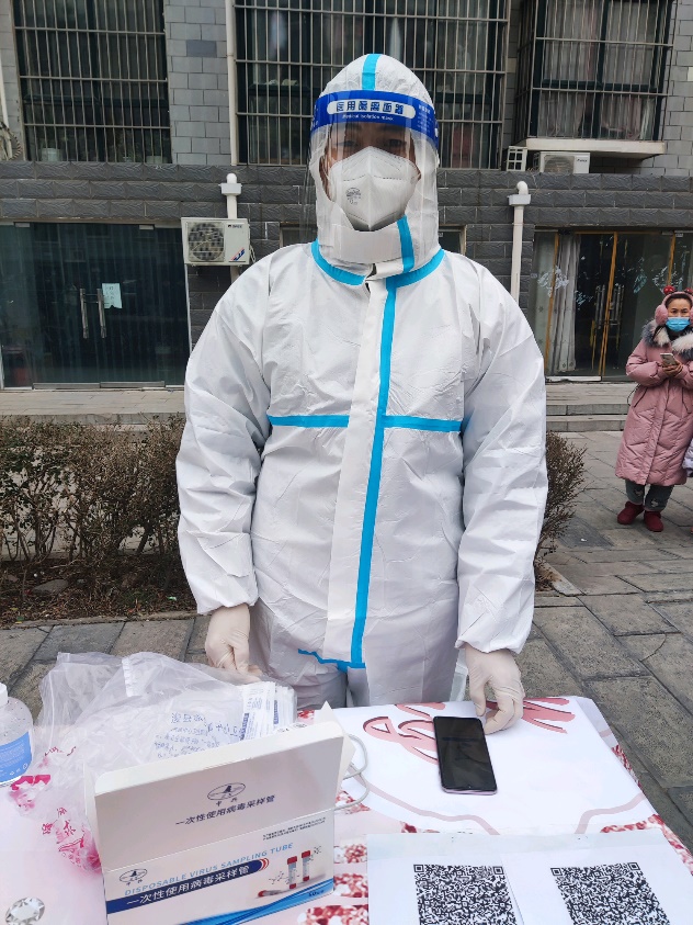 2022年1月14日,在河南省鹤壁市浚县永定春天小区协助医护人员核酸检测。