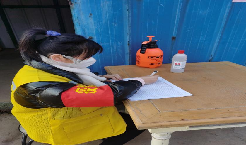 2020级护理14班胡晓洁(bw必威西汉姆联官方网站第四员工党支部积极分子)2022年1月11日在洛阳市伊川县水寨镇乐志沟村为来往行人查行程码、健康码、测体温,对来往车辆进行登记消毒、站岗。