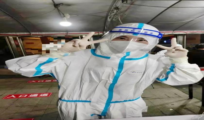 2020级护理9班朱双双(bw必威西汉姆联官方网站第一员工党支部积极分子)2022年1月10日在郑州市郑东新区做核酸采集志愿者