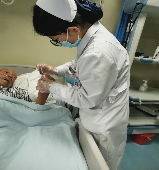2021年12月30日 在安阳市人民医院内科监护室给年迈的老爷爷剪指甲,与老人聊天。