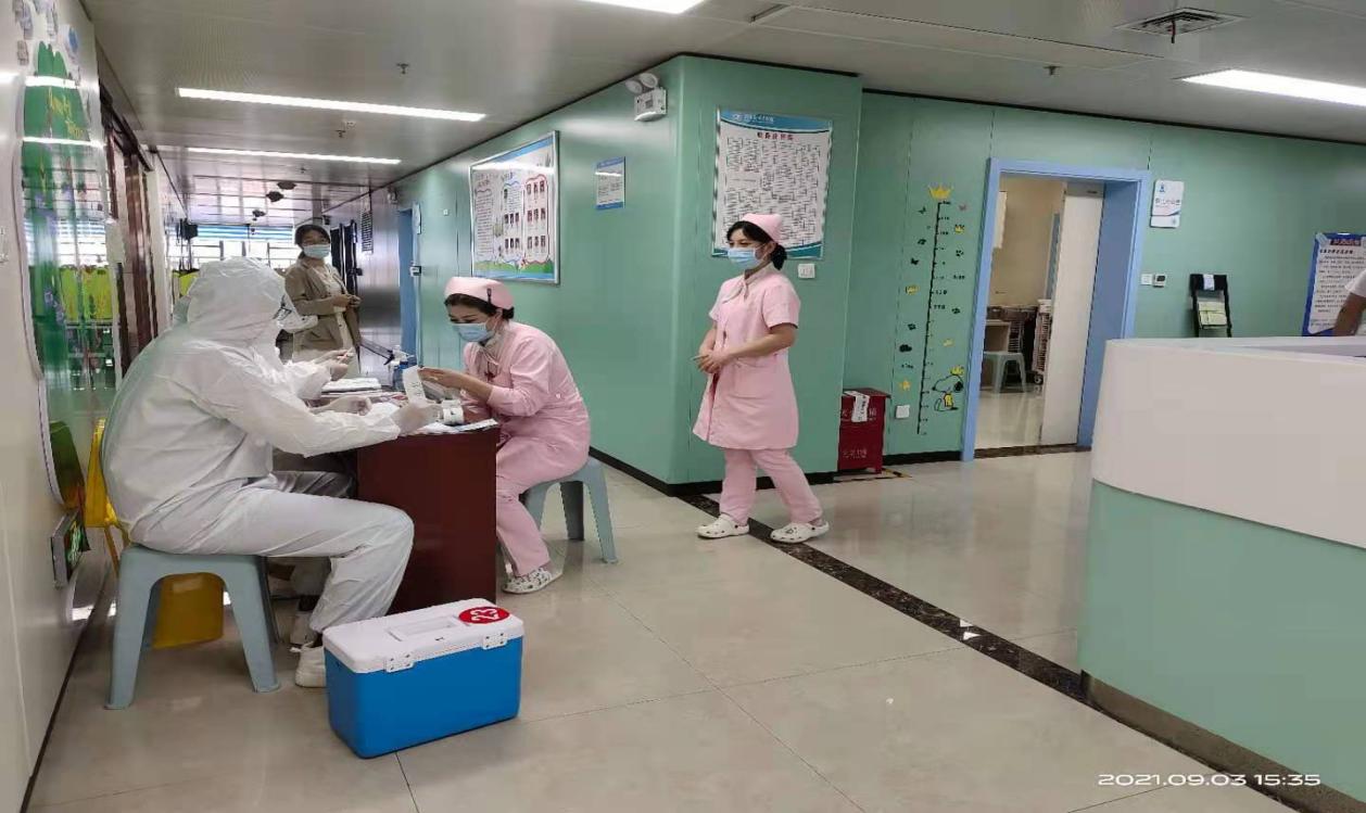 2019级ICU2班 刘哲(预备党员) 9月3日在驻马店市中医院进行单层科室里的医务人员和患者进行核酸检测排查。