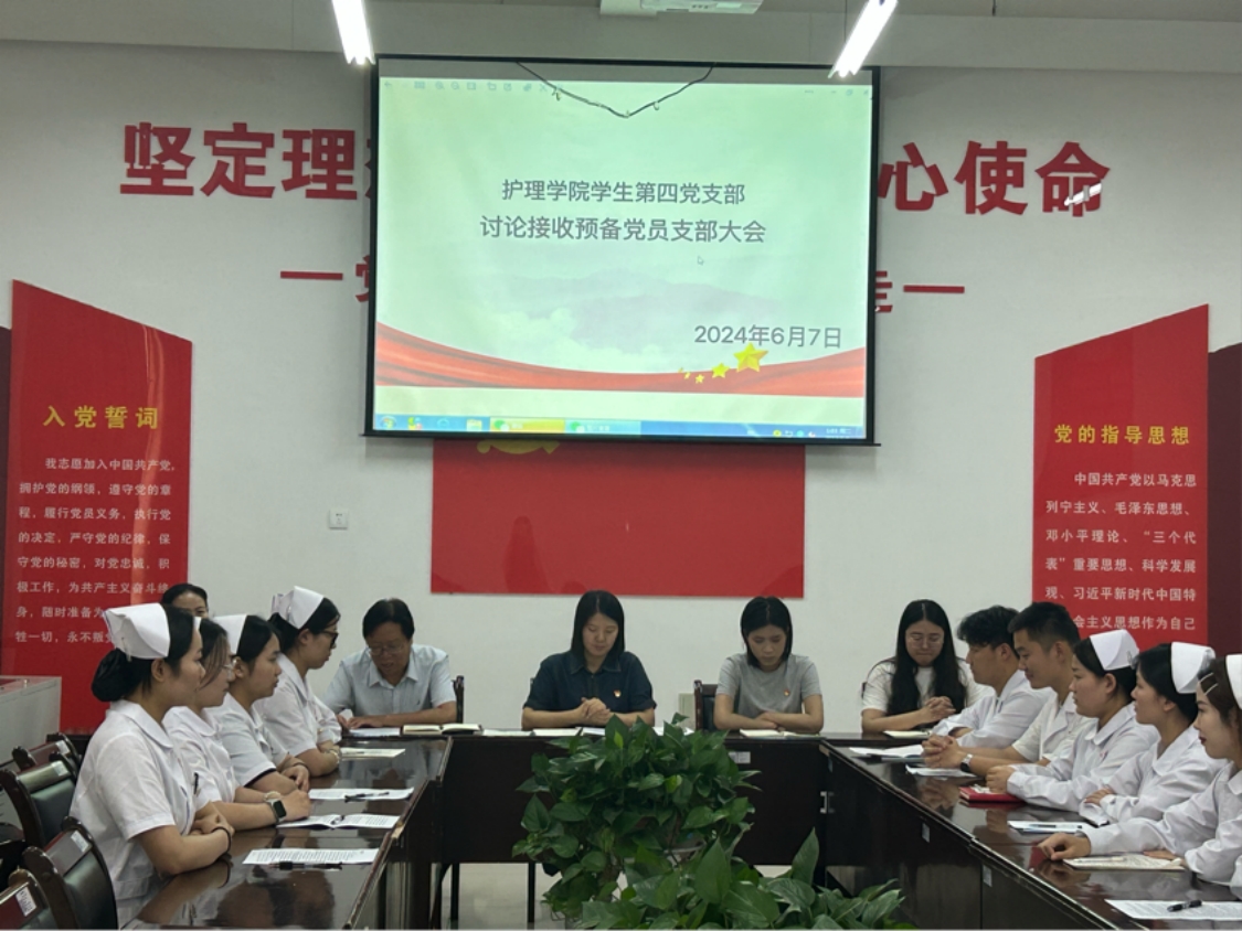 2024年6月7日,bw必威西汉姆联官方网站员工第四党支部在B317召开接收预备党员支部大会,讨论发展对象索一冉等12名同志入党问题。大会由党支部书记王琳主持,支部全体党员参加。