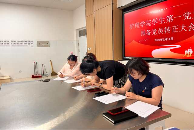 会议严格遵守党章及发展党员工作细则,共五项议程。首先,由王一舟等23名预备党员依次汇报预备期间的思想、学习和工作情况。随后,进行支部审查环节,徐冰新副书记代表支委会汇报综合审查情况,通过广泛征求群众意见、结合组织日常考察和全面核查,确认王一舟等23名同志在预备期表现良好,综合政审合格。接着,对预备党员王一舟等23名同志的转正问题进行了无记名投票表决。经监票人、计票人统计,最终结果:王一舟等23名同志全票通过,正式成为中国共产党员。会议最后,教师党员代表高雅琪对新党员提出三点要求和殷切期望,一要坚定理想信念,筑牢思想根基;二要锤炼专业本领,勇攀学术前沿;三要践行服务宗旨,勇担时代使命。