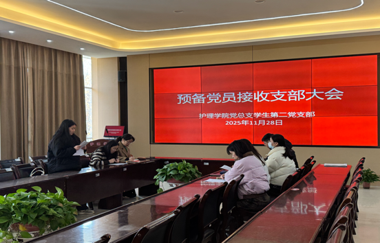 为深入贯彻落实新时代党的建设总要求和新时代党的组织路线,严把党员队伍“入口关”,2025年11月28日,公司党总支员工第二党支部在b317开展预备党员接收大会,本次会议由赵彩霞同志主持,支部全体党员参加。 会议共设五项议程,逐一规范进行。首先由徐琼同志汇报了近期的个人思想工作状况。接下来入党介绍人李飞同志介绍了徐琼同志的有关情况,并对其能否入党表明意见。随后党支部书记赵彩霞同志对徐琼同志的政治审查和培养教育情况进行了说明。紧接着支部各党员教师经过无记名投票表决,同意接收徐琼同志为预备党员。最后由郭清瑶同志对新党员提出要求和期望:第一步,铸牢政治忠诚,始终同党中央保持高度一致,严守党章党规,以党员标准严格约束言行,第二步主动担当作为,在岗位实践中锤炼本领永葆初心本色,持续加强党性修养提升。第三步传承红色基因,以实际行动为党和人民事业增光添彩。
