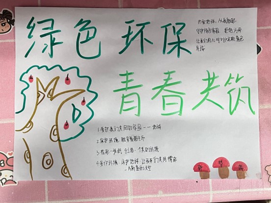 活动中,同学们通过图文结合的手抄报形式,让师生们了解到世界地球日的由来,了解和感受地球生态环境日益恶化的现象。并进行绿植维护,组织员工成员对绿植进行浇水,修剪,除虫等维护工作,用实践行动践行绿色生活,未来将继续开展更多环保活动,为构建绿色家园,实现可持续发展贡献力量。拍摄宣传垃圾分类知识,倡导低碳生活是必然需要,是提升文明水平的客观需要,共筑文明城市,融入生活,化为自觉行动。
