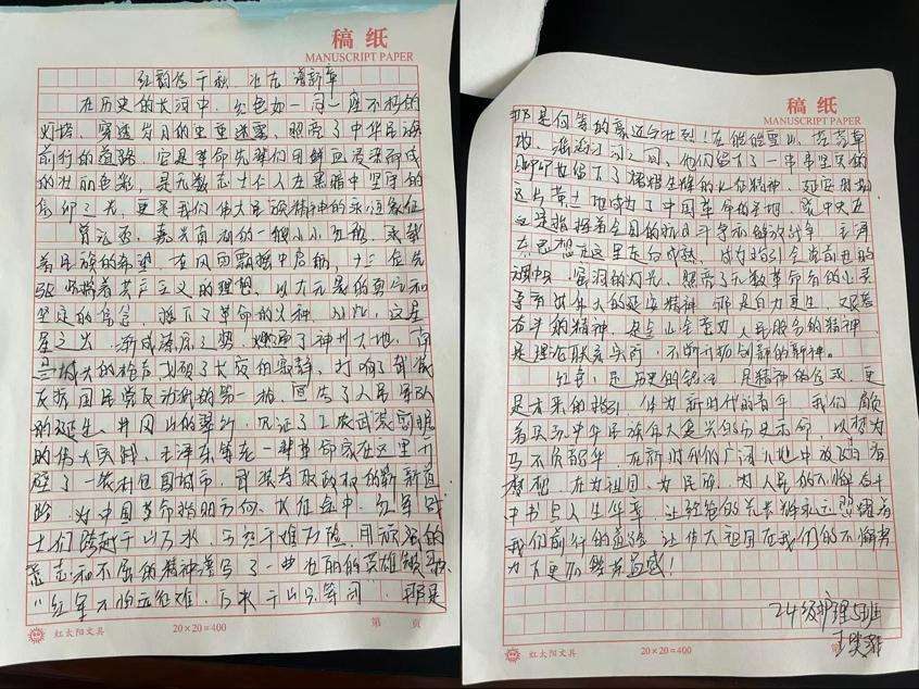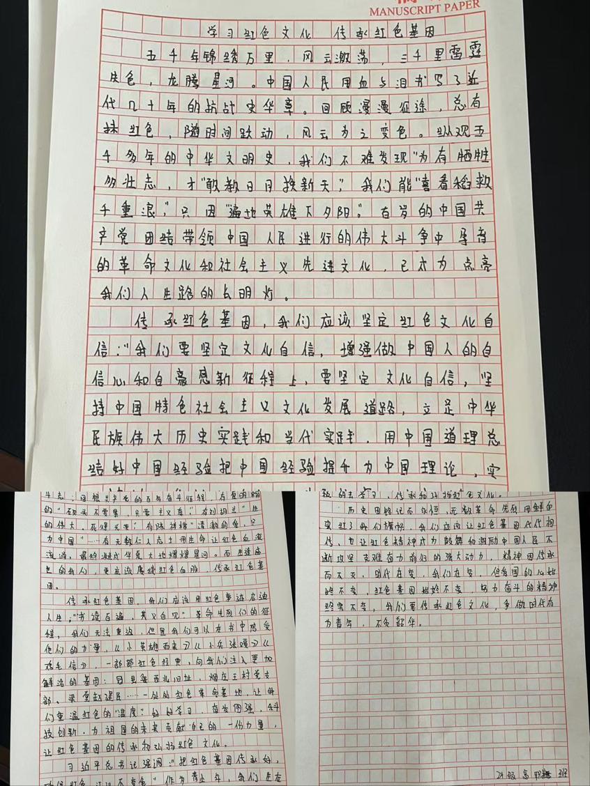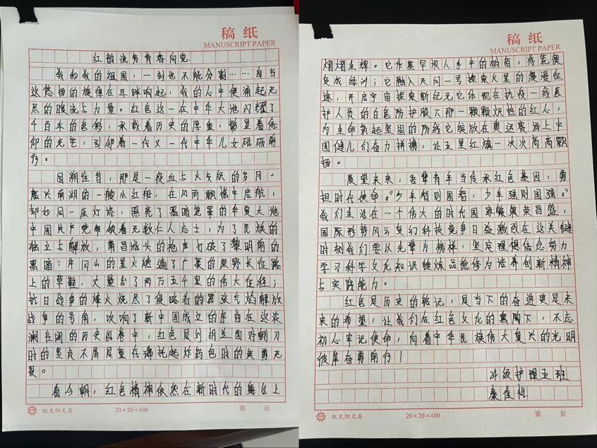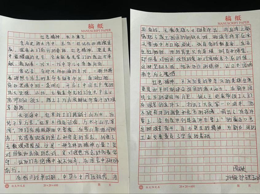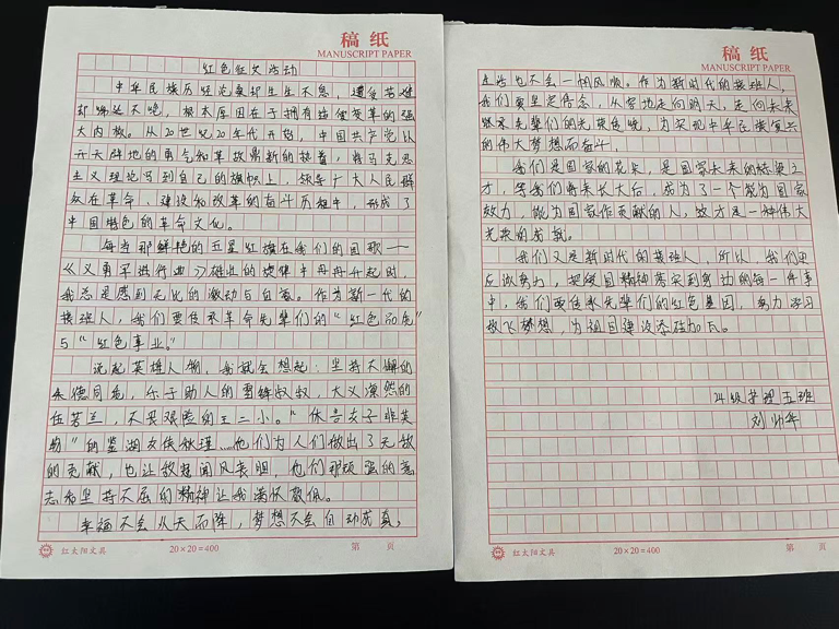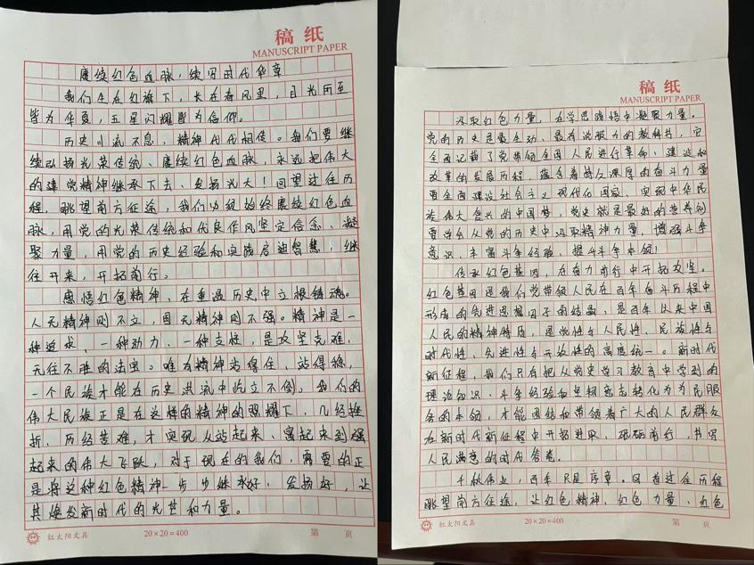 在本次主题活动中,同学们热情高涨,怀揣着对革命先辈的崇敬之情以及对红色文化的热爱,拿起手中的笔,挖掘本地红色故事、先辈英勇事迹或谈自身感悟,以真挚笔触书写对红色精神传承的理解,用心书写一篇篇饱含深情的征文。