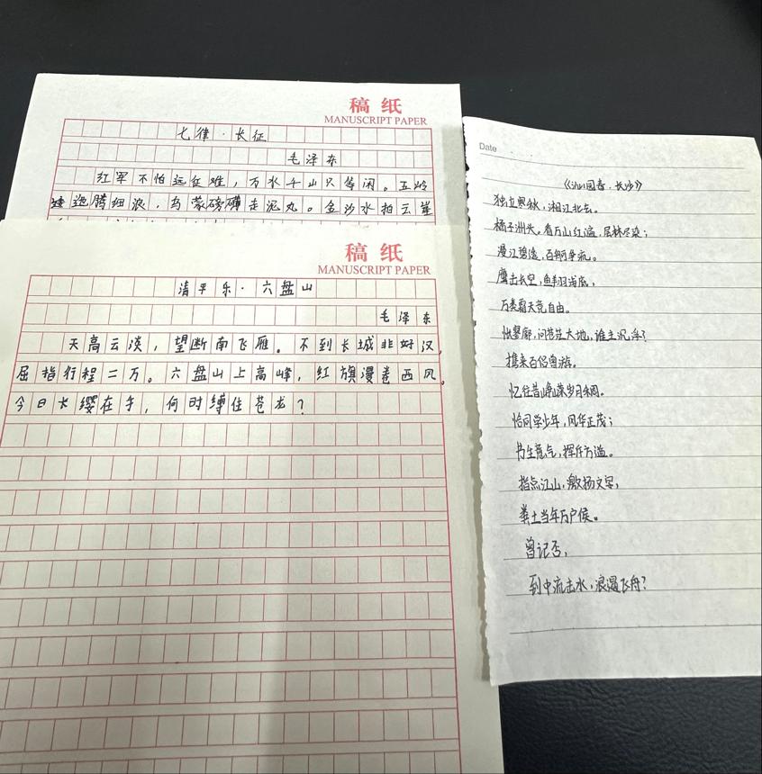 在本次主题活动中,同学们热情高涨,大家紧扣红色传承主题,书写红色诗词。同学们参与活动的过程中,深深地体会到伟人的崇高精神,发扬红色精神,执青春之笔,书写伟人华章。
