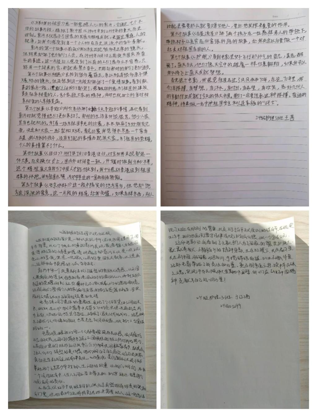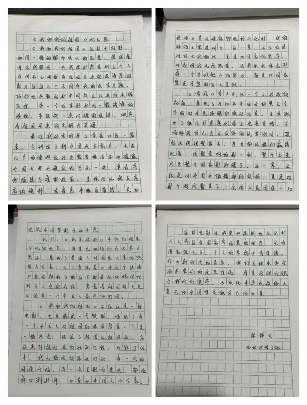 影片以七个不同的故事篇章,串联起新中国成立以来一个个激动人心的历史瞬间。影片不仅让同学们重温了那些辉煌的记忆更在同学们的心田深深种下了爱国的种子。作为新时代的青年,我们肩负着实现中华民族伟大复兴的历史使命。爱国不仅仅是一种情感上的认同和表达,更是一种贵任和担当,我们要将这份爱国情感转化为实际行动,为祖国的繁荣富强贡献自己的青春和力量。